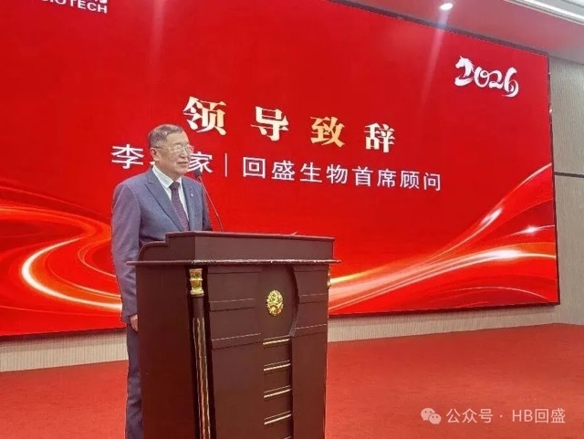 回盛生物首席顾问李名家对湖北回盛2025年取得的优异成绩表示热烈祝贺,对本次大会的节目编排、表彰设置等环节给予高度评价。他寄语全体员工,2026年要锚定发展目标、凝心聚力实干,推动企业发展再上新台阶。值此春节来临之际,李名家还为全体员工送上了新春的美好祝福。